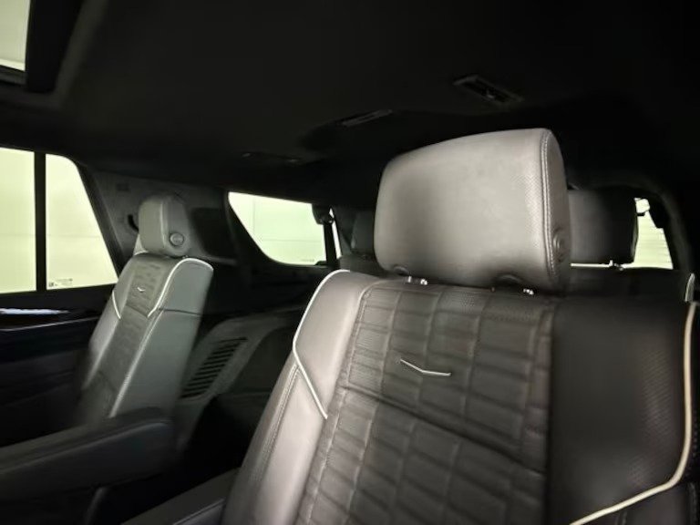 Navigation system, Lane departure, Leather upholstery, Automatic, temperature control, Emergency communication system, Power moonroof, Wireless phone connectivity, Parking sensors, Exterior parking camera front, Exterior parking camera left, Exterior parking camera right, Exterior parking camera rear, Front dual zone A/C, Heads up display, Auto high-beam headlights, Rain sensing wipers, Auto-dimming rearview mirror, 3rd row seats, Split folding rear seat, Massaging driver lumbar support, Memory seat, Heated front seats, Ventilated front seats, Perimeter/approach lights, Remote keyless entry, Rear air conditioning, Auto tilt-away steering wheel, Heated steering wheel, Adaptive suspension, Steering wheel mounted audio controls, Rear audio controls, Heated rear seats, Headphones, Rear window wiper, Fully automatic headlights, Security system, Steering wheel memory, Power driver seat, Power passenger seat, Alloy wheels, Heated door mirrors, Auto-dimming door mirrors, Trailer sway control, Spoiler